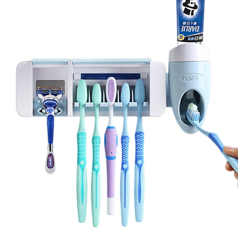 Bathroom Accessories UV Electric Toothbrush Holder Wall Mounted Sterilizer Auto Toothpaste Dispense