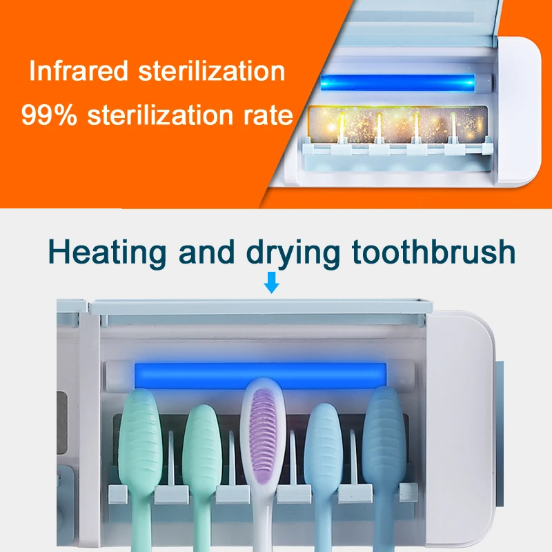 Best Seller Bathroom Accessories UV Electric Toothbrush Holder Wall Mounted Sterilizer Auto Toothpaste Dispense