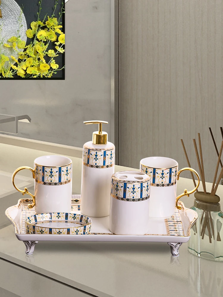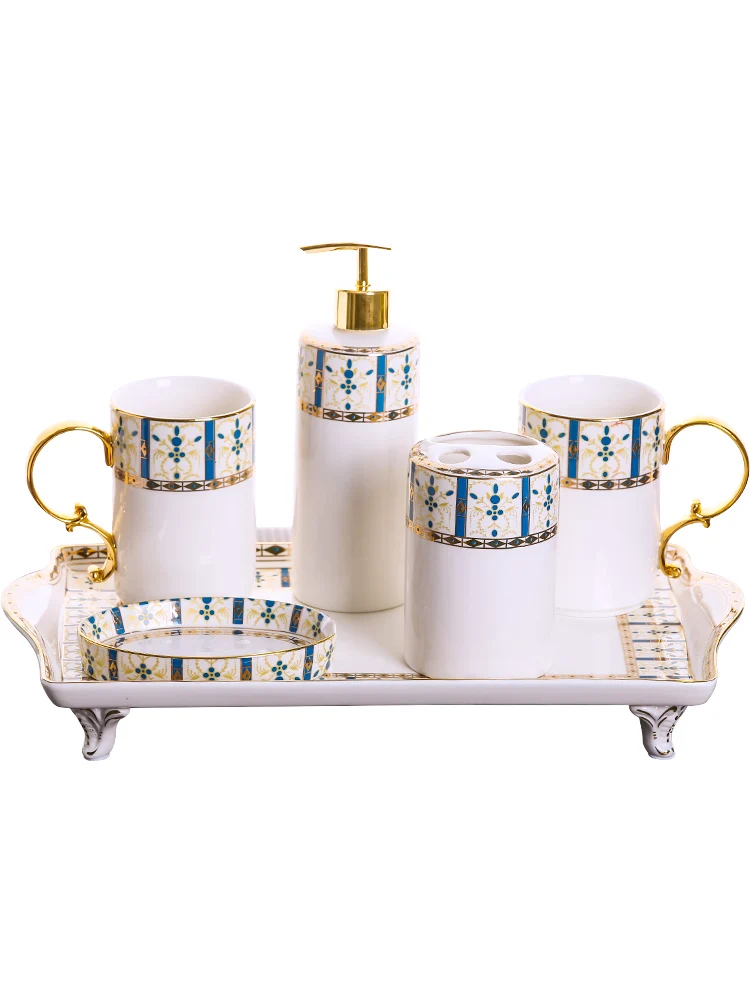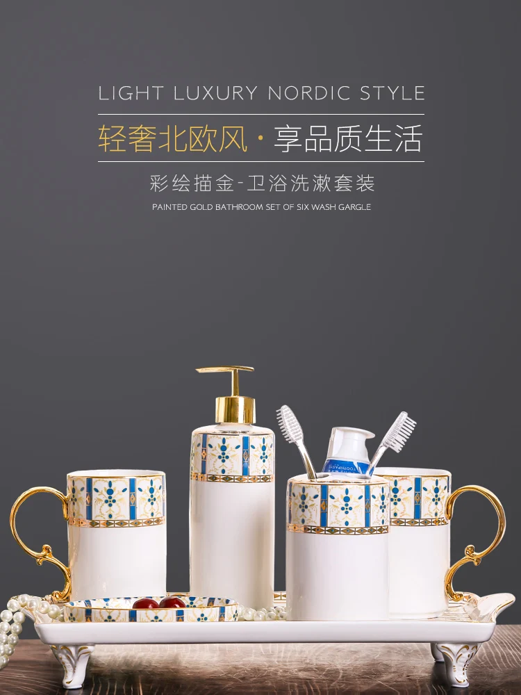 Nordic American Ceramic Creative Sanitary Ware Five-piece Tooth Brushing Cup Washing Set Simple Hot