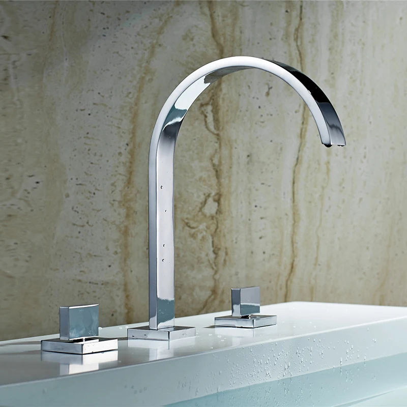 Best Quality Basin Faucets Brass Polished Chrome Deck Mounted Square Bathroom Sink Faucets 3 Hole Double Handle
