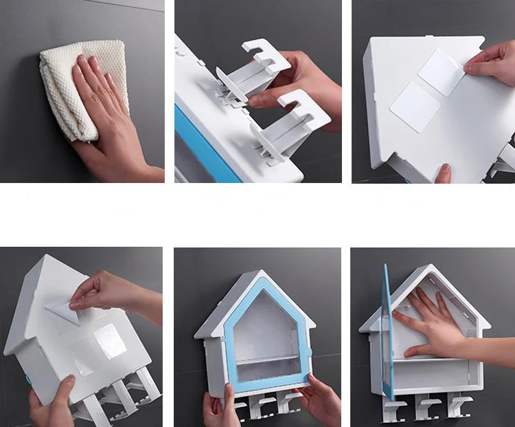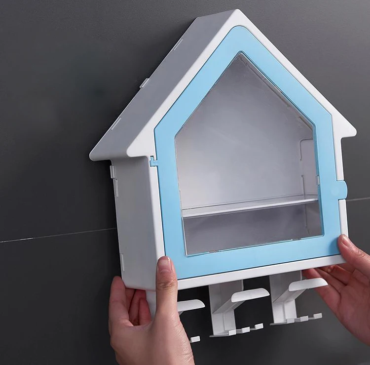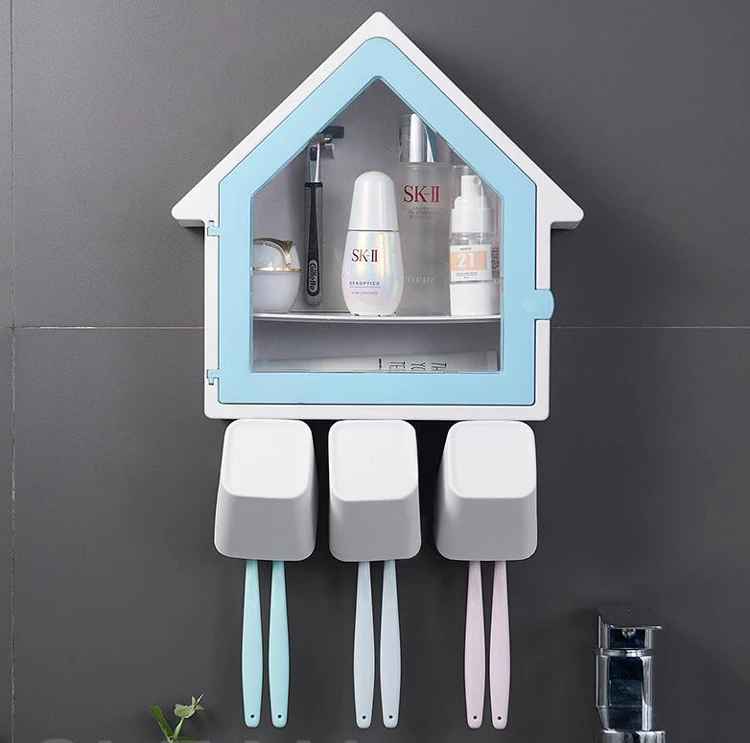 Creative Plastic Toothbrush Holder with 3 cups Wall Mounted Double Layer Storage Rack Multifunction