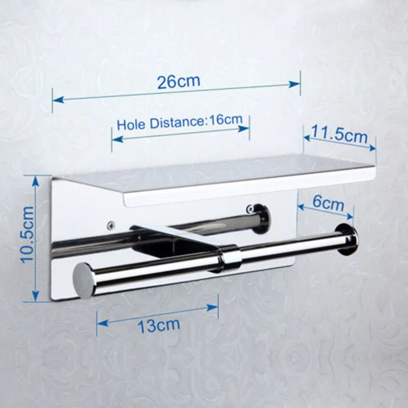 Wall Mount Double Toilet Paper Holder Shelf Bathroom Tissue Stainless Two 2 Roll Brushed Towel Shel