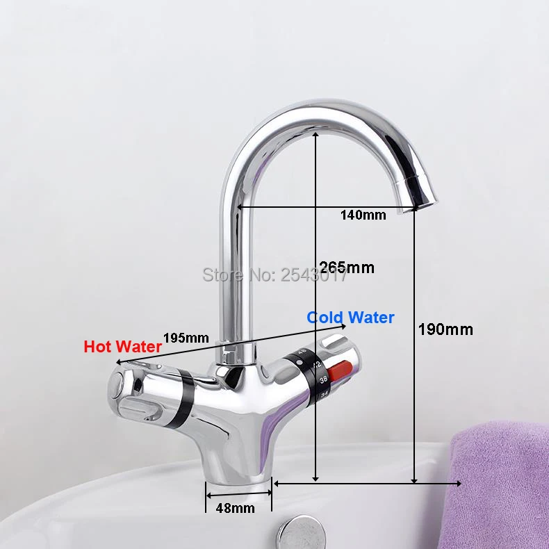 Best Quality GIZERO Thermostatic Bathroom Swivel Faucet Small Spout Temperature Control Deck Mounted Vessel Sink
