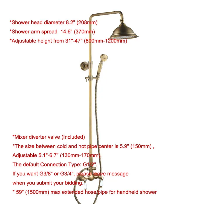 REVIEW TOP SELLER Vintage Retro Antique Brass Wall Mounted Bathroom 8.2" Round Rain Shower Head Faucet Set Dual Ceram