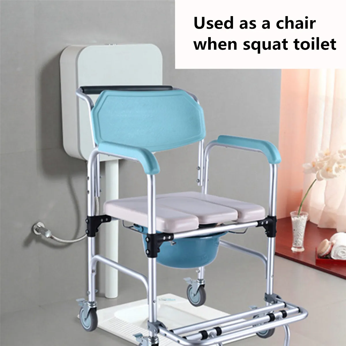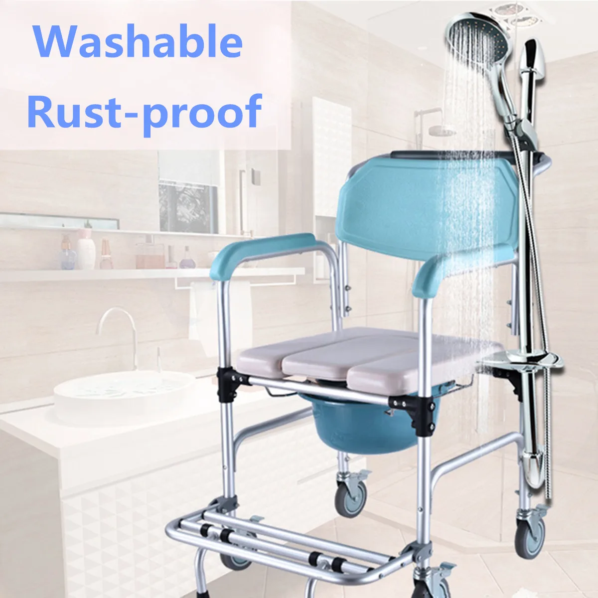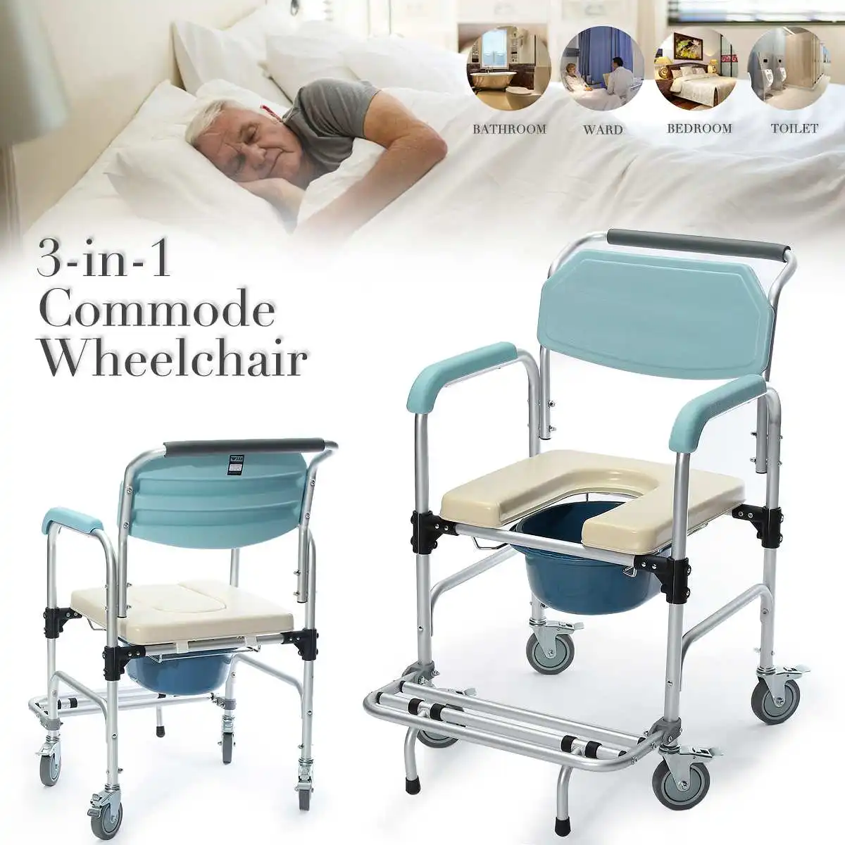 Commode Wheelchair 3 in1 Toilet Shower Seat Potty Bathroom Rolling Chair Durable Waterproof Soft Cu